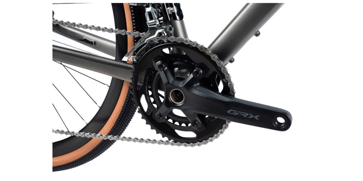 Napęd bazuje na komponentach Shimano GRX RX600 oraz RX400 w konfiguracji 2x11, umożliwiając precyzyjną zmianę biegów dopasowaną do zróżnicowanych warunków jazdy. Taki zestaw dobrze sprawdza się zarówno na szybkich asfaltowych odcinkach, jak i podczas jazdy po bardziej wymagających drogach szutrowych. Hydrauliczne hamulce tarczowe Shimano GRX RX400 gwarantują pewne i skuteczne hamowanie w każdych warunkach atmosferycznych, również na mokrej nawierzchni.