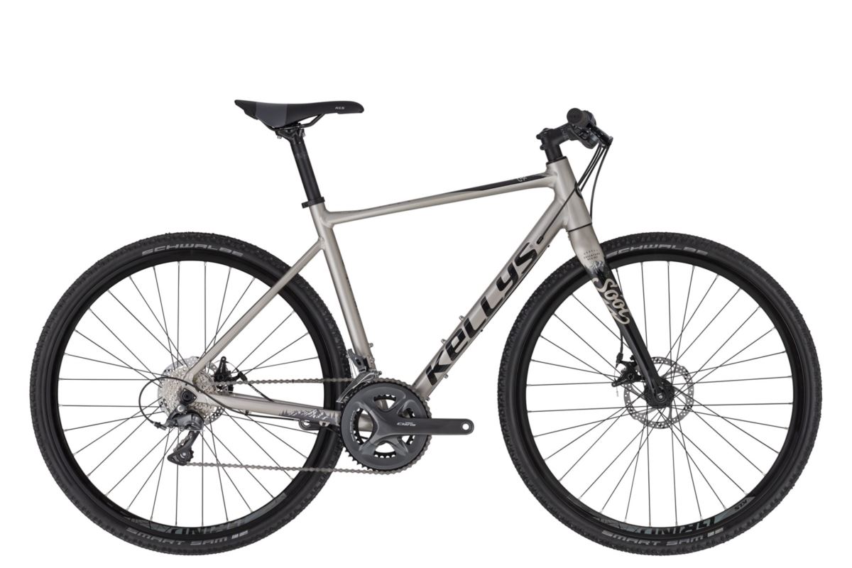 Kellys Soot 20 to wszechstronny gravel z lekką aluminiową ramą i karbonowym widelcem, wyposażony w napęd Shimano Claris 2x8 oraz mechaniczne hamulce tarczowe Tektro Spyre. Duże koła z oponami Schwalbe Smart Sam 700x40C zapewniają komfort i przyczepność zarówno na asfalcie, jak i szutrze. To idealny wybór dla osób szukających wygody i uniwersalności na każdej trasieKellys Soot 20 L to wszechstronny gravel z lekką aluminiową ramą i karbonowym widelcem, wyposażony w napęd Shimano Claris 2x8 oraz mechaniczne hamulce tarczowe Tektro Spyre. Duże koła z oponami Schwalbe Smart Sam 700x40C zapewniają komfort i przyczepność zarówno na asfalcie, jak i szutrze. To idealny wybór dla osób szukających wygody i uniwersalności na każdej trasie