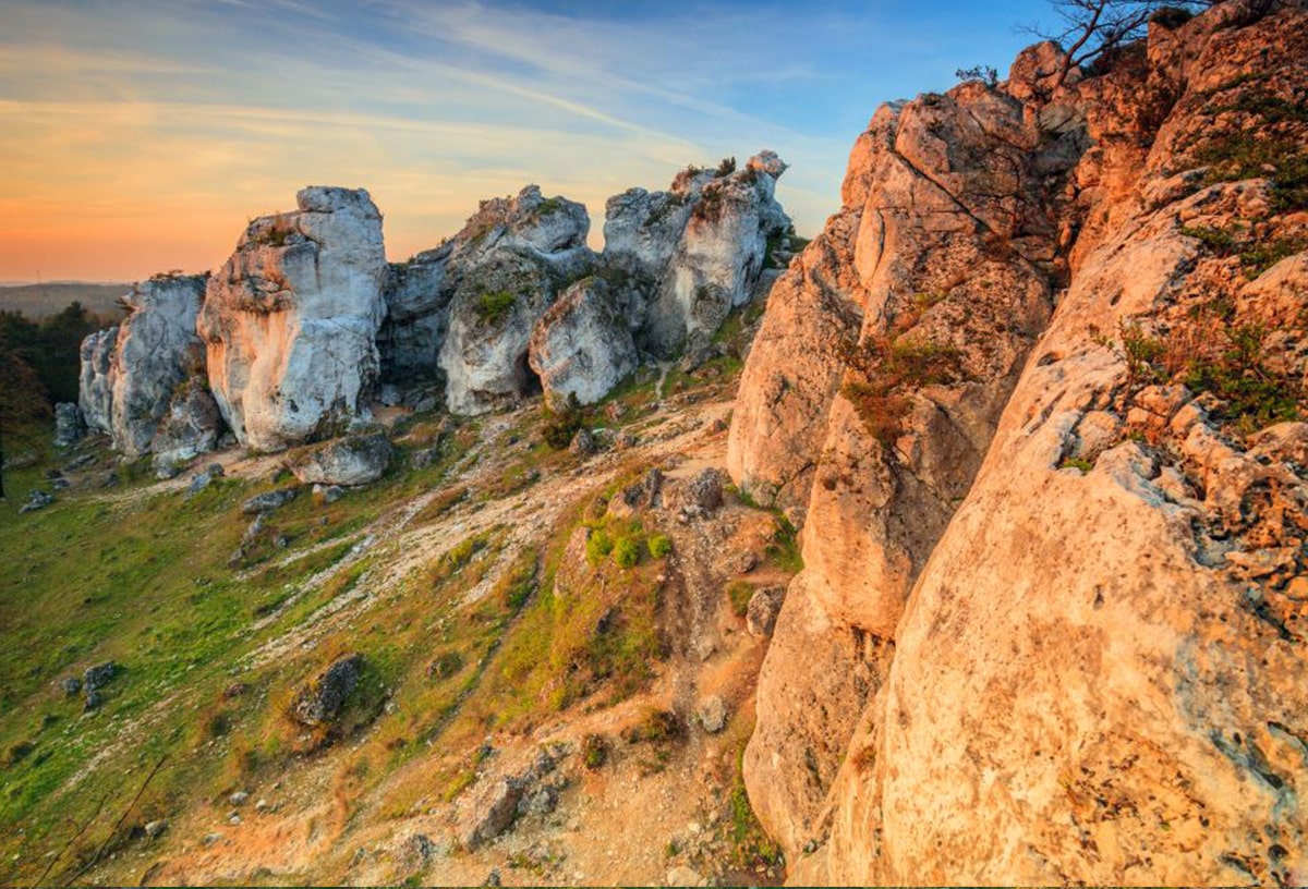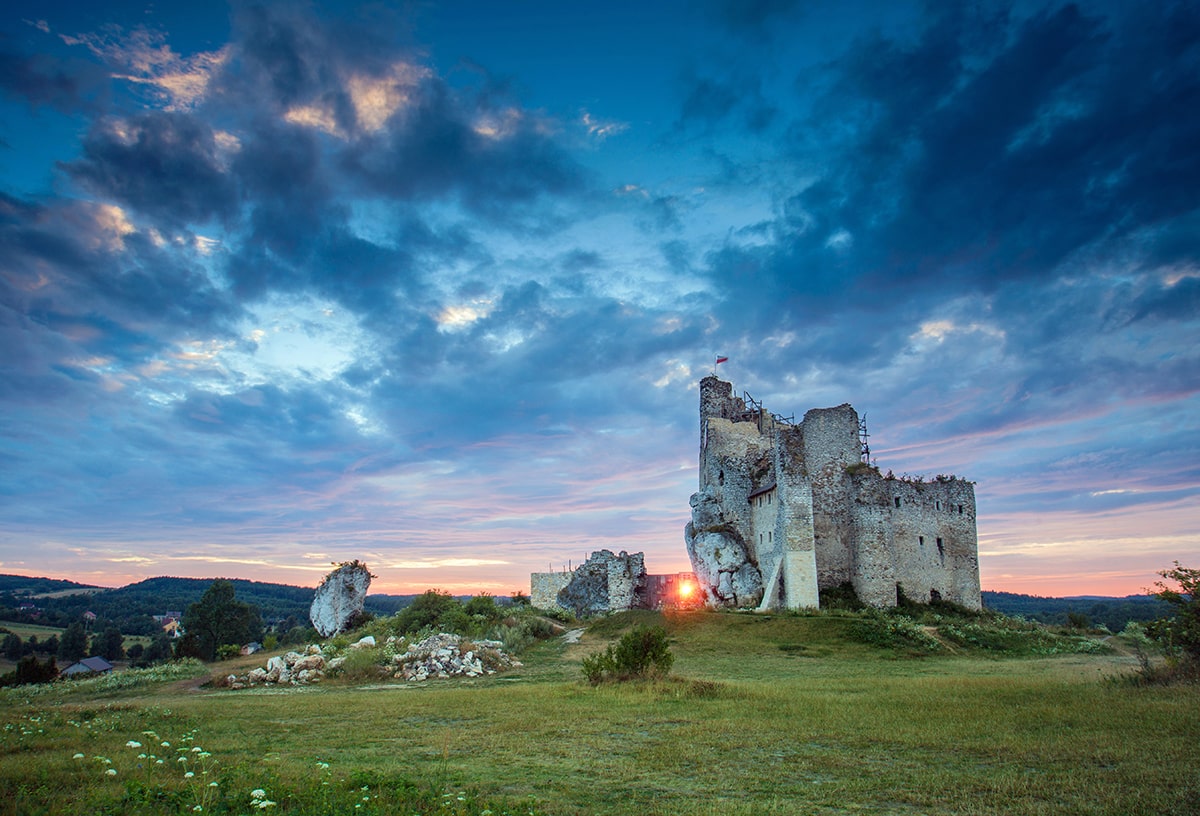 Następnie docieramy do dwóch leżących nieopodal siebie zamków w Bobolicach i Mirowie. Bardzo malowniczy rejon obu warowni to zresztą kolejne miejsce, gdzie warto zatrzymać się dłużej. Jadąc dalej na południe dojeżdżamy do Podlesic. Ta znana miejscowość jurajska, stanowiąca bazę noclegową i gastronomiczną dla turystów przemierzających Wyżynę, jest dobrym miejscem odpoczynku. Warto pozostawić tutaj rowery i przespacerować się na widokową Górę Zborów oraz do Jaskini Głębokiej.