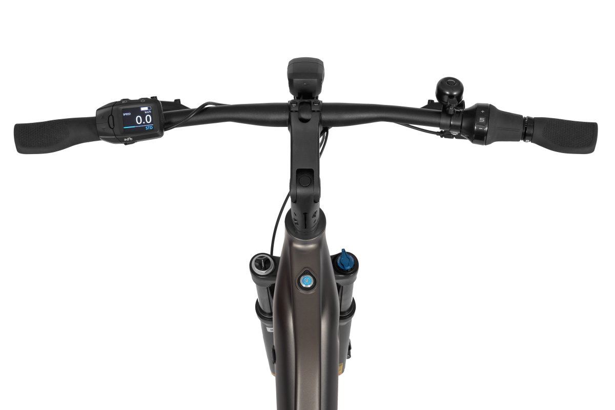 Zasilanie zapewnia niezwykle pojemna, zintegrowana z ramą bateria LG 900Wh (36V, szybka ładowarka 100–240V / 42V 3A w zestawie), która przy typowych warunkach użytkowania gwarantuje zasięg do 170km na jednym ładowaniu. Ogniwa o wysokiej sprawności pozwalają na długą eksploatację przy zachowaniu pełnej mocy, a efektywne zarządzanie energią oraz nowoczesny system BMS spełniają najnowsze normy bezpieczeństwa. Obsługę całości ułatwia kolorowy wyświetlacz Panasonic NKS500S, umożliwiający połączenie z aplikacjami Komoot oraz Strava i oferujący intuicyjne sterowanie oraz czytelny podgląd wszystkich najważniejszych parametrów w czasie jazdy.